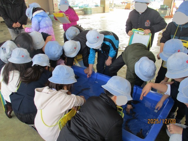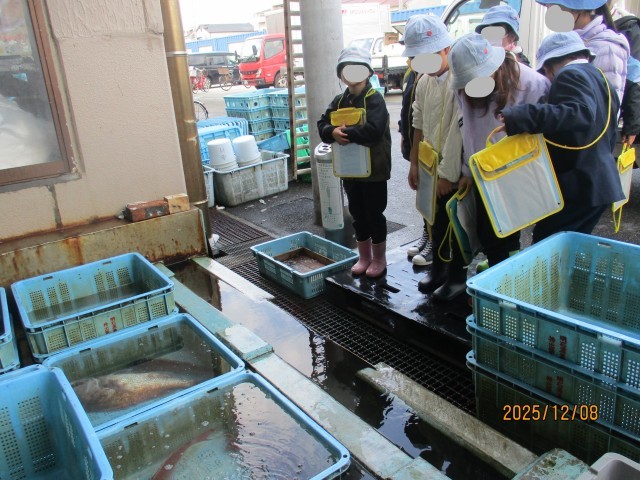 12月8日、「社会科の学習に役立ってほしい。」と、組合長のご厚意で、明石浦漁協さんへ競りの見学に行ってきました。