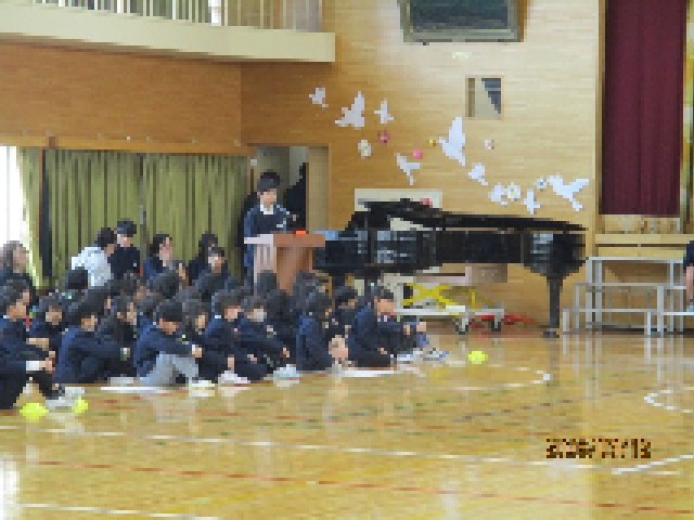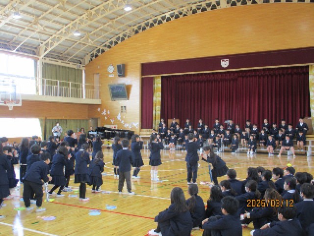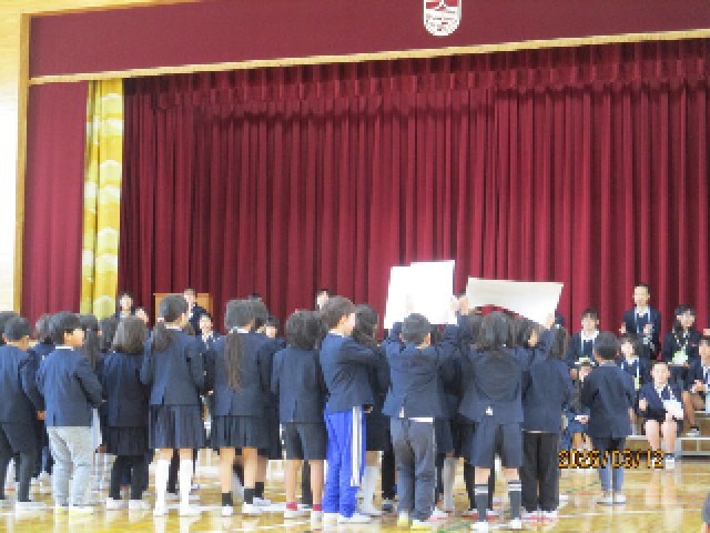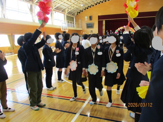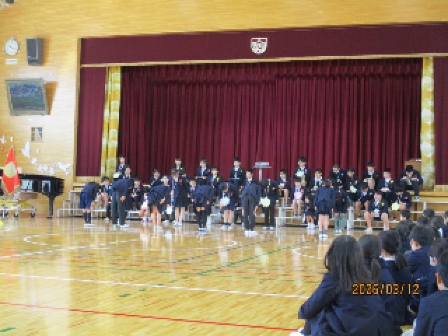 3月12日に6年生を送る会を行いました。今までお世話になった6年生には、各学年からの心温まる出し物で、感謝の気持ちを伝えました。出し物には、歌やダンス、クイズなどもありました。6年生はそれぞれの出し物に見入っていました。また、児童会役員の引継ぎ式もおこなわれました。新児童会役員の児童は、6年生の前で、「大観小学校を笑顔あふれる学校にしていきます。」と決意を新たにしていました。