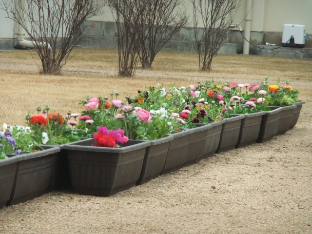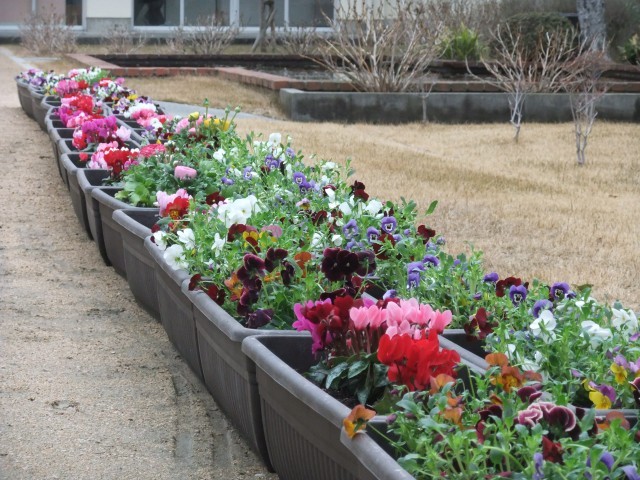 プランターの花は卒業式、入学式の花道にも使います。