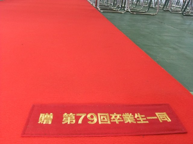 PTAより卒業記念として中央の赤絨毯を贈っていただきました。ありがとうございます。