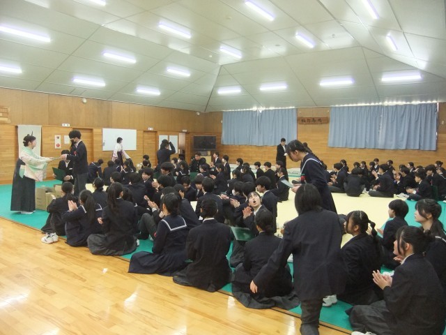 24日(水)、2学期終業式を行いました。今年から暖房の効いた体育館で行っています。明日25日から冬季休業になります。短い期間ですが有意義に過ごしましょう。始業式は1月7日(水)です。