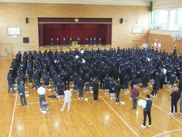 1月7日(水)、始業式を行いました。校歌斉唱、生徒集会は新生徒会執行部が進めました。各クラスでも専門委員が決まり専門委員会も行われました。これから進学、進級などが控えています。3学期は短い期間ですが次のステップの準備として頑張っています。