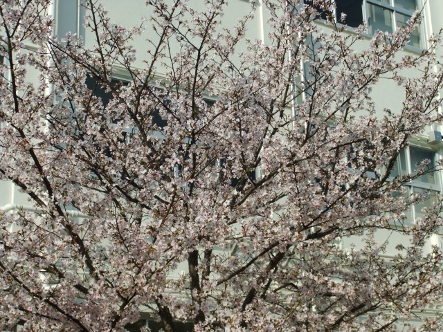 中庭の桜は満開です。他の桜の木も咲き始めすぐに満開になりそうです。
