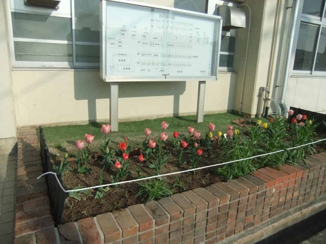 生徒玄関横のチューリップも咲いています。