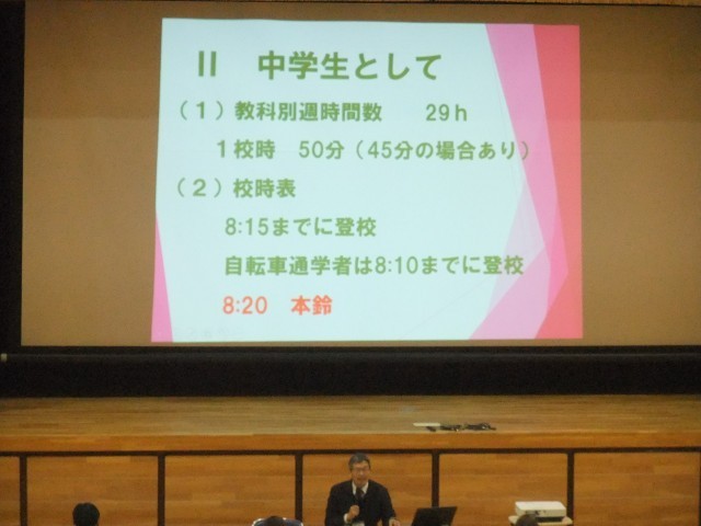 学校生活、学習、部活動、PTA活動などの説明を行いました。