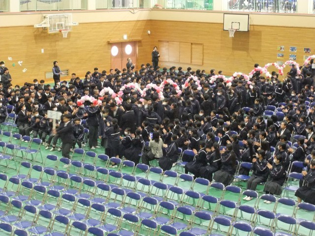 全校生が集まるのは今回が最後になりました。来週17日には卒業式が行われます。