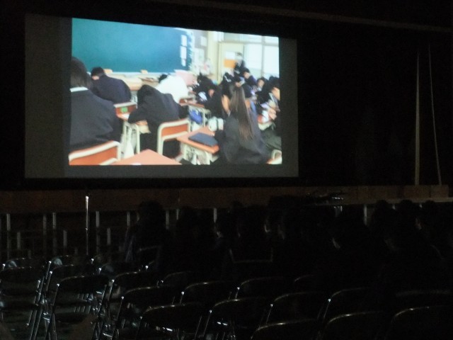 11月27日(木)、生徒会選挙が始まっています。朝の登校時に、校門前で投票を呼びかけています。教室ではアピール動画を視聴しています。