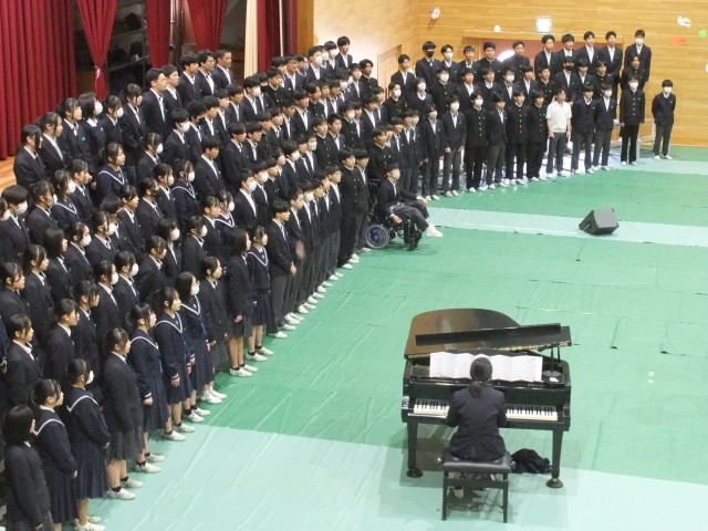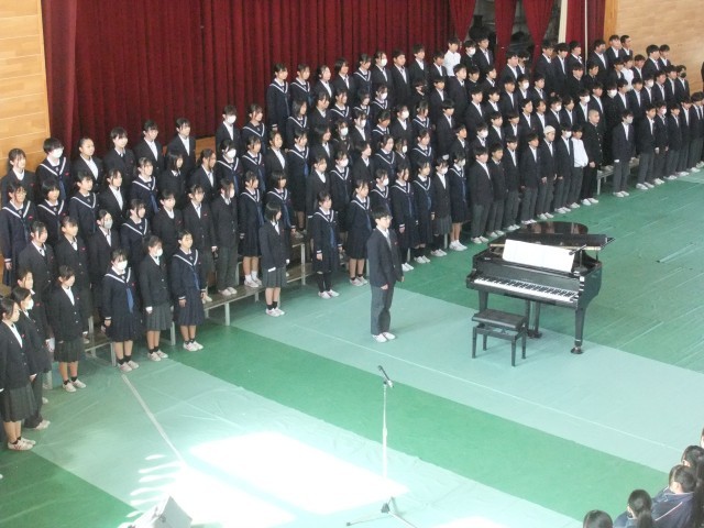 各学年の合唱のあと全校生で校歌斉唱を行いました。