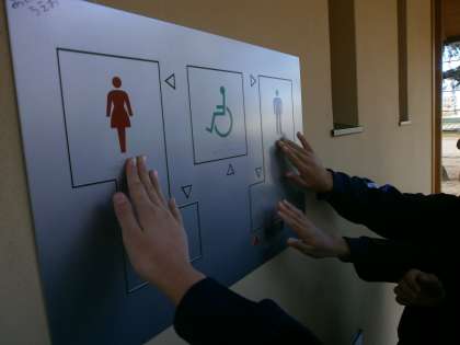 誰もが住みよい社会を目指して考えられたユニバーサルデザイン。そのデザインを探そうと丸亀城に行きました。点字で書かれた案内板や車いすの方にも使いやすいスロープ,広いトイレや妊婦さんや高齢者優先の駐車場など,丸亀城はユニバーサルデザインの宝庫です。さすが日本各地,いや外国からも観光客の訪れる観光スポット。
