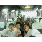 バスの中は、暖房をかけてもらっているので、濡れた体もだんだん乾いて暖かくなってきました。ビデオもかけてもらっているので、真剣に見ています。