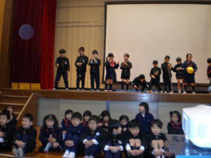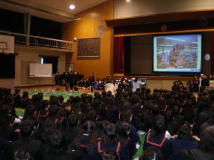 2月6日(水),第2回全校ワールドタイムが体育館で開かれました。この全校ワールドタイムは,生活科や総合的な学習の時間に学習したことを,各学年が全校生に伝えるために,いろいろと発表を工夫して行う表現の場です。また,他の学年の発表を聞いて,感じ方・考え方を共有化したり,新しい学年での学習への意欲を高めたりする場でもあります。