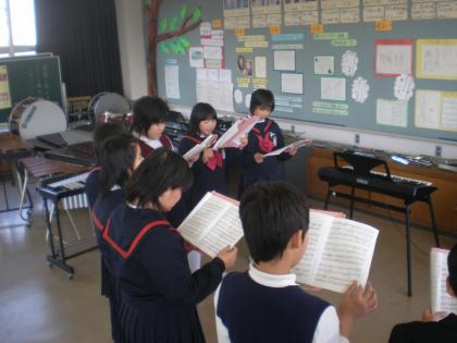 音楽の時間に、卒業式で歌う歌を練習しています。高音と低音の各パート練習を重ねて声がよく出るようになってきました。これからもっと気持ちをこめて歌えるように練習して、卒業式ではすばらしい歌声を聞かせてくれると思います。