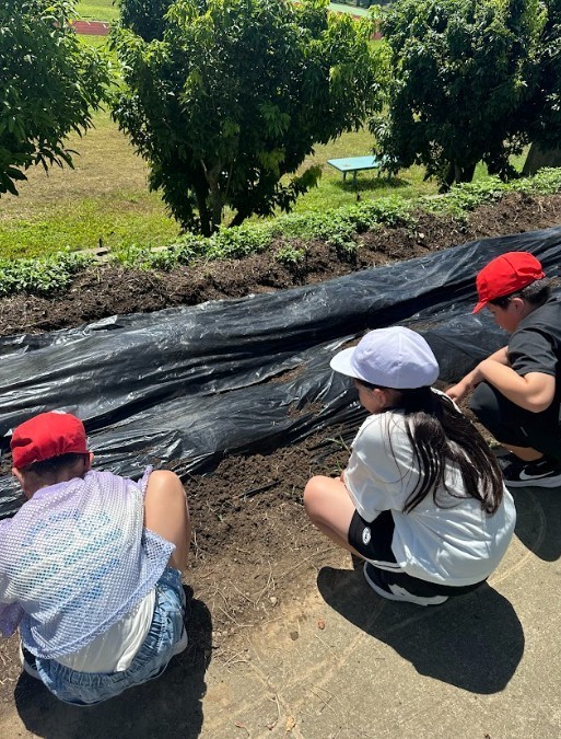 「大きいのができたらいいな。」「みんなで家庭科でさつまいもを調理したいな。」など、収かくを楽しみにしている様子です。