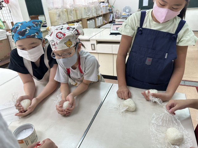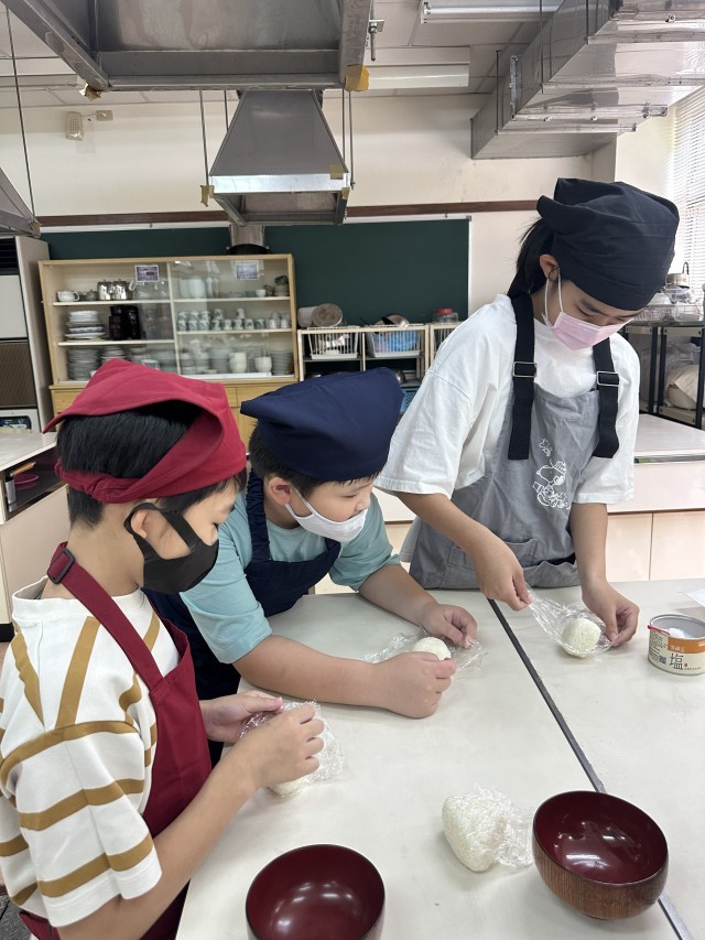 家庭科の時間に、おにぎり作りに挑戦しました。