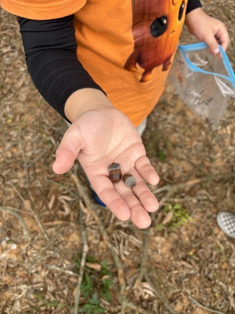どんぐりを拾ったり、広い公園内を走り回ったり、元気いっぱい楽しみました♪