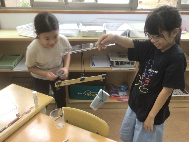 20日(木)「重さ」の学習では,てんびんを使って,電池やコンパスなどの重さを数で...