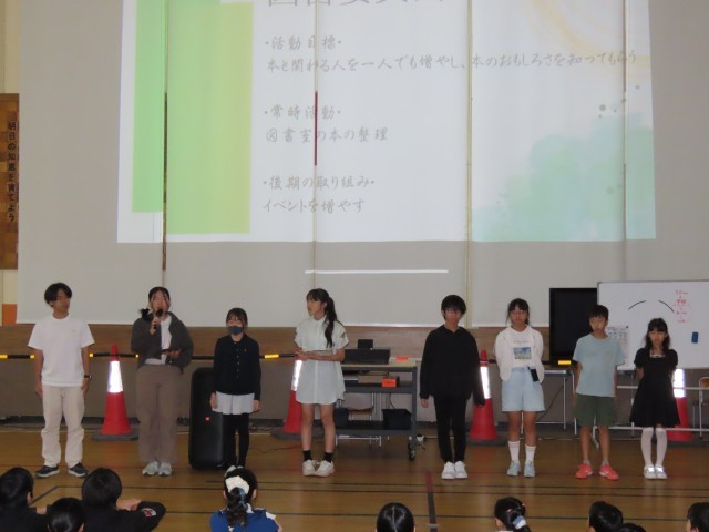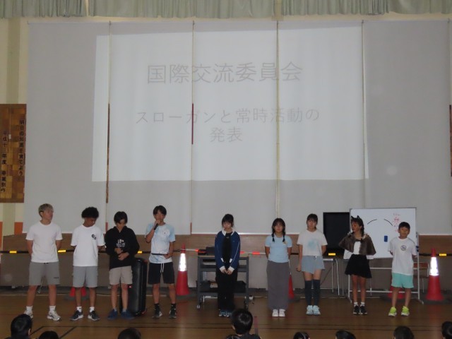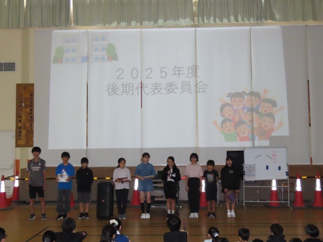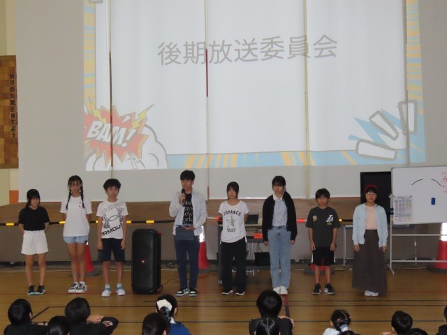 10月31日金曜日、えがおの広場の時間に後期実行委員会の目標や活動についての報告が行われました。G9からG7とG8に世代交代し、G7やG8が生徒会長や実行委員長を務めることになりました。前期やこれまでの経験をいかして、後期の実行員会をまとめていきましょう。