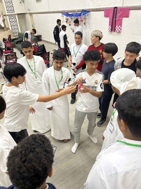 10月30日木曜日、男子はシャルジャにあるSecondary Model School For Boysへ現地校交流に行きました。開会式では、あいさつや学校紹介をアラビア語で行い、これまでの成果を発揮することができました。その後、サッカー交流やアラビックの食文化、日本のおもちゃや箸の使い方など交流を行いました。当日の運営や準備にたくさんの人の労力が注がれています。楽しかっただけで終わらず、見えないところにも目が向けられるといいですね。